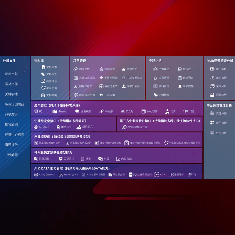 医疗器械产品上市前,,,,要熟悉严格与繁复评审标准,,,,整理分析监管机构指导文件中的海量信息。。。。企业急需一个智能化解决方案,,提升知识管理效率,,提高评审通过率,,以提升其市场竞争力。。